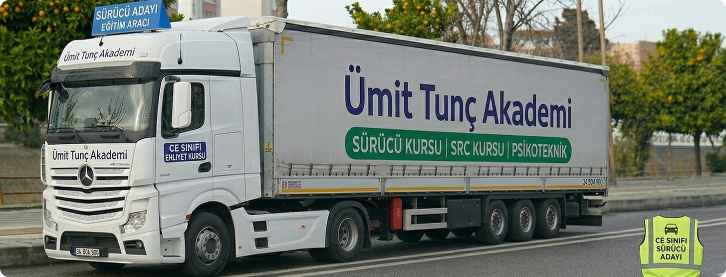 CE Sınıfı (Tır Ehliyeti) programımız sizi ağır vasıta dünyasının zirvesine taşır. Çünkü tır kullanmak yüksek düzeyde teknik bilgi ve manevra yeteneği gerektirir. Üstelik modern çekici ve dorse kombinasyonlarımızla bu süreci profesyonel bir deneyime dönüştürüyoruz.